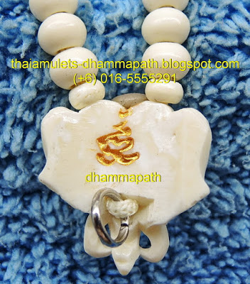 类型 :这壮丽象骨象头和象骨珠的项链(长34cm,象骨的象头长度2.5厘米)有效的象骨项链由龙普宏在BE 2555开光加持。特色惊人的高技能手工制作的象骨雕刻的金色神圣扬持与绑定的环在象头后面。龙普宏自身法相铜币在前面,珠子是由象骨制成。这条象骨链有三个环。龙普宏达到年事已高,被尊为圣和尚。他制成的象骨象头和象骨株的项链,是用柬埔寨魔法书的经语转达到这条项链。我强烈向你推荐。