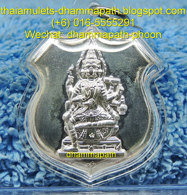 类型 :这是强大的银帕四面佛玛哈 Brahmas Nur银 (高度3.6厘米)在BE2554年由龙普丢亲自开光。特色与令人惊叹的帕四面佛设计手拿神圣的武器图像印章代号在前面。这神圣的帕四面佛是由神圣的银材料制成,只有2000个。后面有神圣扬持和印上系列号和扬持代码。提供与寺庙盒和外壳。极具收藏价值,在良好的条件,完全正版。
