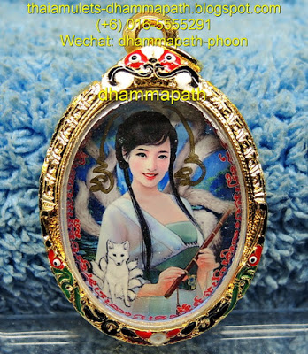 类型 : 這是强大的九尾狐仙咯捷与圣物及镀金外壳(高4.2厘米)由美鲁士Pakinee在BE2557开光。精选特色优雅的九尾狐仙图像与手工编写的九尾狐神咯捷在前面。添加了神圣的珍宝包括圣粉,阴通,2 支打固,李博和宝石,珠宝首饰,珠子和扬持表与序列号在后面。精选添加镀金外壳。提供与寺庙发出卡和镀金外壳。我强烈推荐给你。