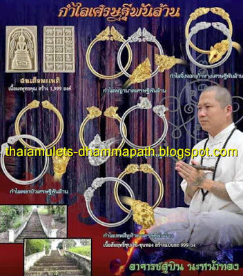 类型 :這是优秀的金色莲花手镯与扬持(直徑5.6厘米)由阿赞蘇濱 在他的Samnak Nanathong房子BE2559盛典开光。这强大的金色莲花手镯是从神圣的青铜材料和涂层金黄色表面,总制作999个。精选顶部的神圣莲花形像。神圣的花纹设计与手镯表面涂金。 此批是筹集资金,以建立楼梯(扶手)在Wat Wiangmon在清莱。随附寺庙包装。我强烈推荐给你。