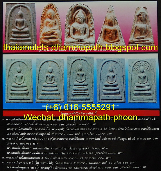 类型 :這是神聖頂级的Benjapakee佛一套(高2.3厘米間 - 3.4厘米間)在瓦拉康BE2536由众多热门僧侣为这批卓越又靈驗的帕崇迪集。与许多和尚开光加入了祝福,包括最高Supreme Patriarch Somdet Sangkaraj,LP Kasem 龙普卡贤,LP Tim龙普添,LP Pae,LP Yaem,LP Koon龙普坤,LP Pern和来自中国佛教寺庙的僧侣. 这套里面有5件,帕崇迪, 帕 PhongSupan, 帕Soomkor, 帕Nang Phaya, 帕Rod 图像在前面。這神聖的Benjapakee集是由神聖的108聖粉制成。与神圣扬持和名称细节在背面。提供與寺廟盒。我強烈向你推薦。
