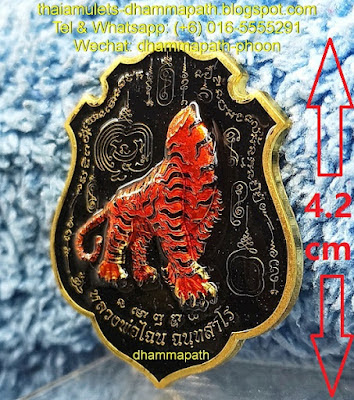 类型 :这是凶猛的断头虎 SerHawTaek Roon Benja MahaSerming Rachapayak Nur Thong Reung + LongYar 颜色(高4.2cm)在BE2564 Wat Khunakorn由龙普 ChanNai在BE2564受到极大的祝福。这个令人惊叹的 SerHawTaek 图像“断头虎 - 无头虎”图像与神圣的扬持和名字细节在前面。 精选带有循环无头虎图像的神圣特定扬持,代号和序列号在后面。 这神圣的 断头虎是由Thong Reung材料 + LongYar 颜色制成,总共只生产 2000 个。 额外的老虎是丛林中最强大的力量生物,它们的咆哮吓坏了所有生物。 我强烈推荐给你。