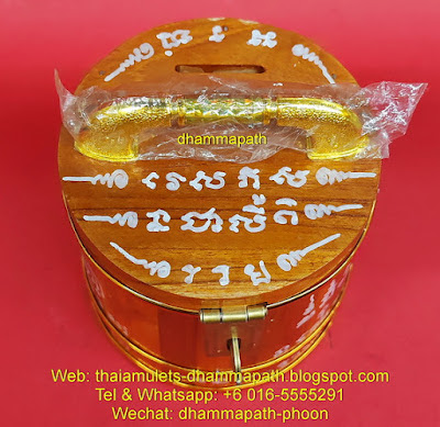 类型 :这是非常富有的富裕木桶 5寸与扬持(高 12.5 厘米 X 13 厘米)由龙普 Sommai 在 BE2565 开光。 精选神圣的富裕木桶,并在整个钱桶表面添加了特殊的手写扬持。 这款神圣的财富桶由木制制成,顶部添加了手柄。 非常适合积累财富、吸引和维持您家中的繁荣。 我强烈推荐给你。