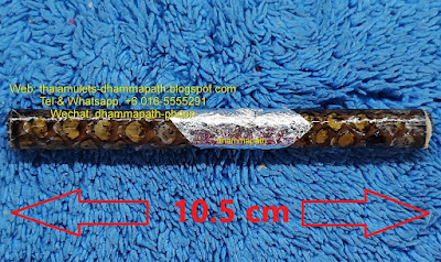 类型 :这是令人惊叹的蛇皮打固 Nang Ngu Leam Roon Mahasetthi Thanjai 与 力莱(长10.5cm)在BE2566由阿赞提列开光。精选有效神圣的打固 Nang Ngu Leam(蟒皮),表面添加神圣银箔和激光名称细节。这神圣的打固 Nang Ngu Leam 的蟒皮(背面)写有神圣的扬持,卷起来制成打固,并在打固内添加神圣的圣粉+力莱石。阿赞提列因信徒定期测试他的打固和护身符而被称为“防弹僧”。随附寺庙盒。我强烈推荐你。